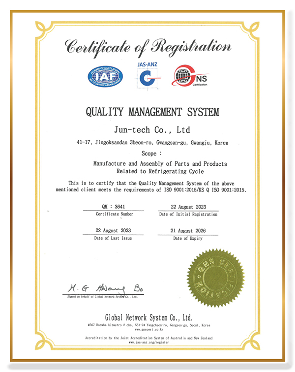 품질경영시스템 인증서 (ISO 9001:2015)